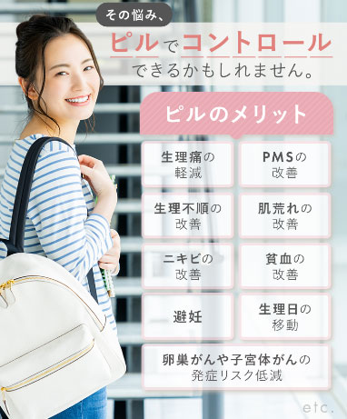 ピルは避妊目的だけでなく、ひどい生理痛や経血量、苛々や不快感などが起こるPMSといった毎月の生理のさまざまなトラブルの改善にも役立つものであり、上手に取り入れることでQOLも向上します。