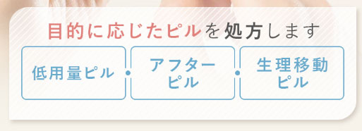 低用量ピル、アフターピル、生理移動ピルなど、さまざまなニーズに対応した処方をオンラインで行っています。