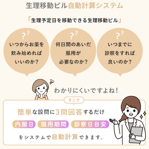 初めてピルを考える人でも使いやすく、定期的な低用量ピル利用から、急な必要時のアフターピル、生理移動まで幅広くカバー。